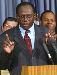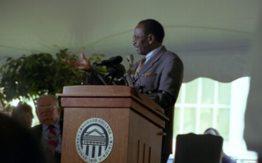 Here, John Stokes speaking at the Robert Russa Moton Museum, Farmville, VA, on April 23, 2001, on the 50th Anniversary of the Prince Edward County African American student strike at Robert R. Moton High School.